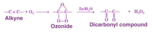 炔與臭氧發(fā)生反應(yīng),導致炔斷裂。 這產(chǎn)生了臭氧化物中間體。 在鋅金屬的幫助下進行簡單的含水后處理,很終產(chǎn)生二羰基化合物。 反應(yīng)可以寫成: